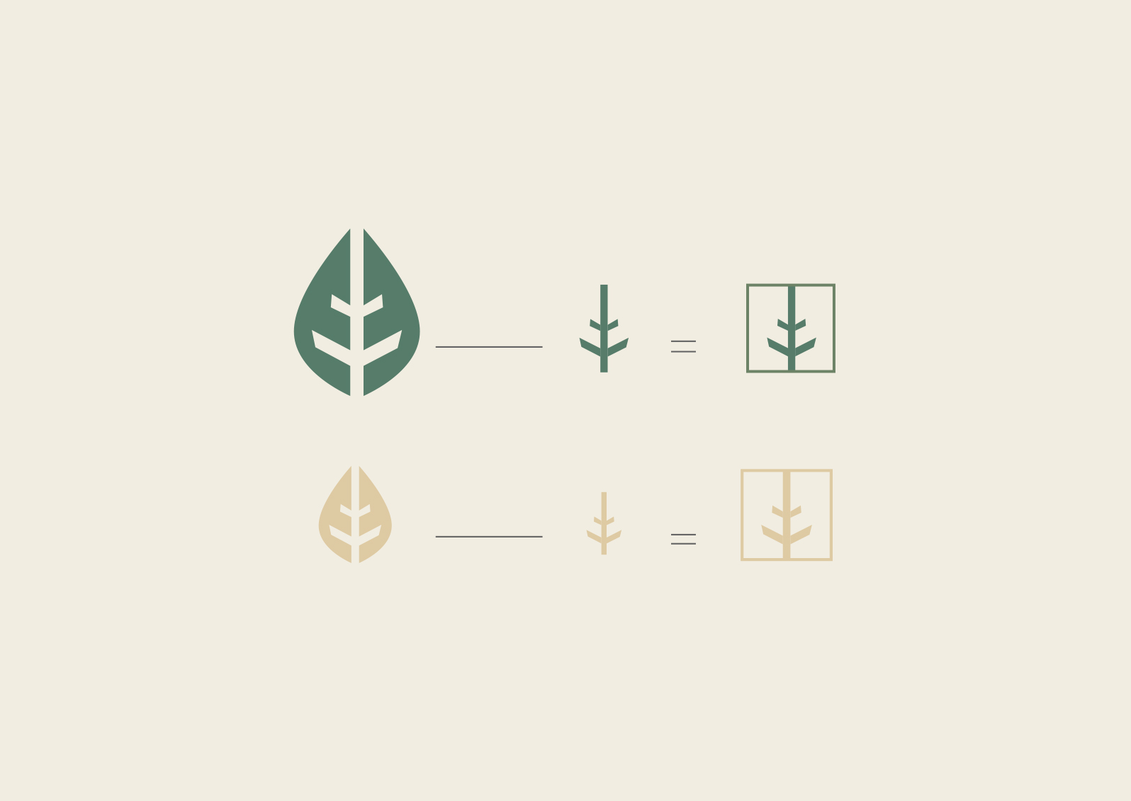 El icóno de la marca se crea mediante líneas, en un trabajo de sencillez y minimalismo, representamos una hoja para darle fuerza y conexión con lo natural de esta marca.